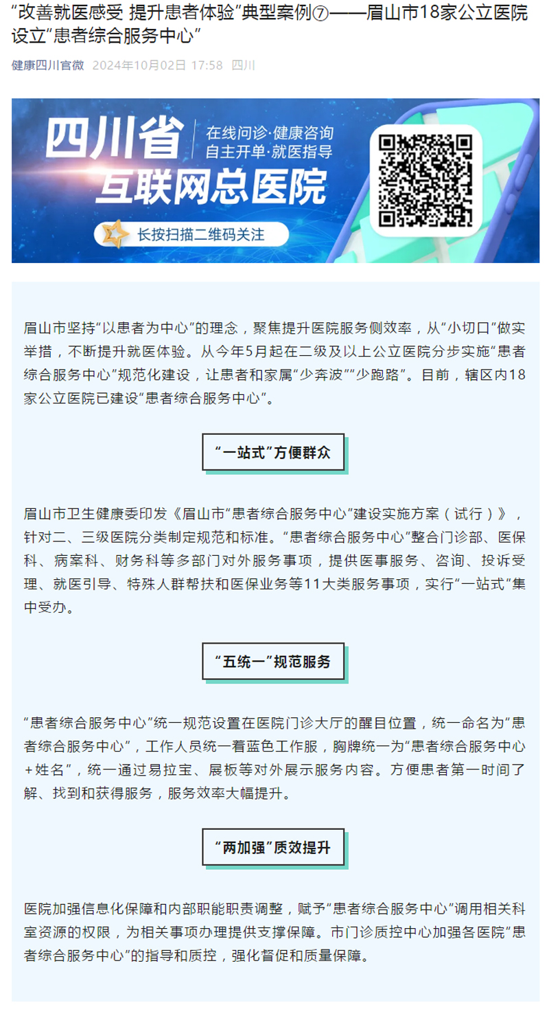 ——眉山市18家公立医院设立“患者综合服务中心”