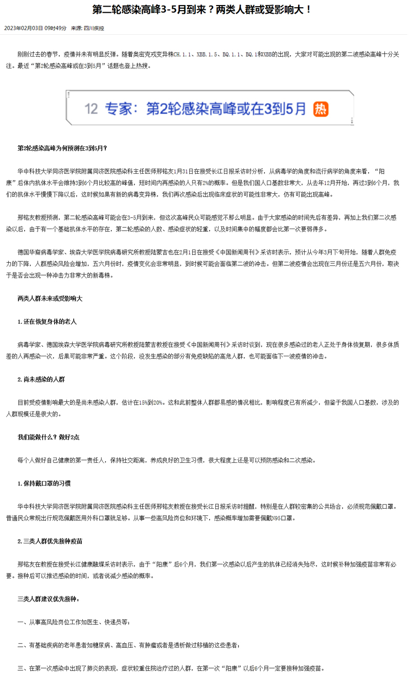 第二轮感染高峰3-5月到来?两类人群或受影响大!