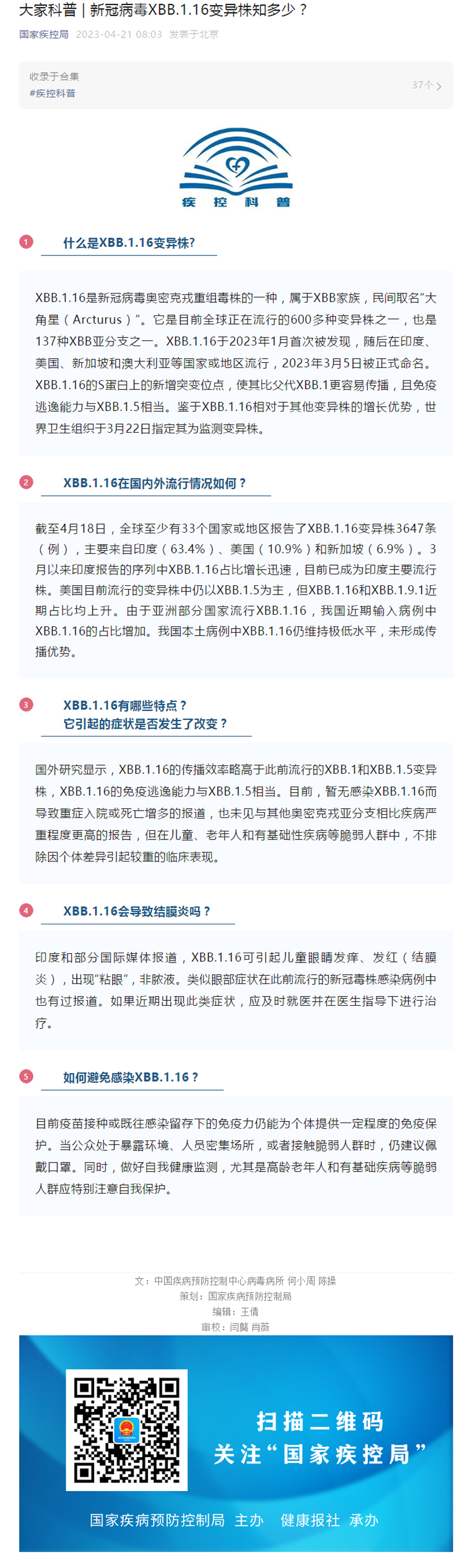 大家科普 | 新冠病毒XBB.1.16变异株知多少?