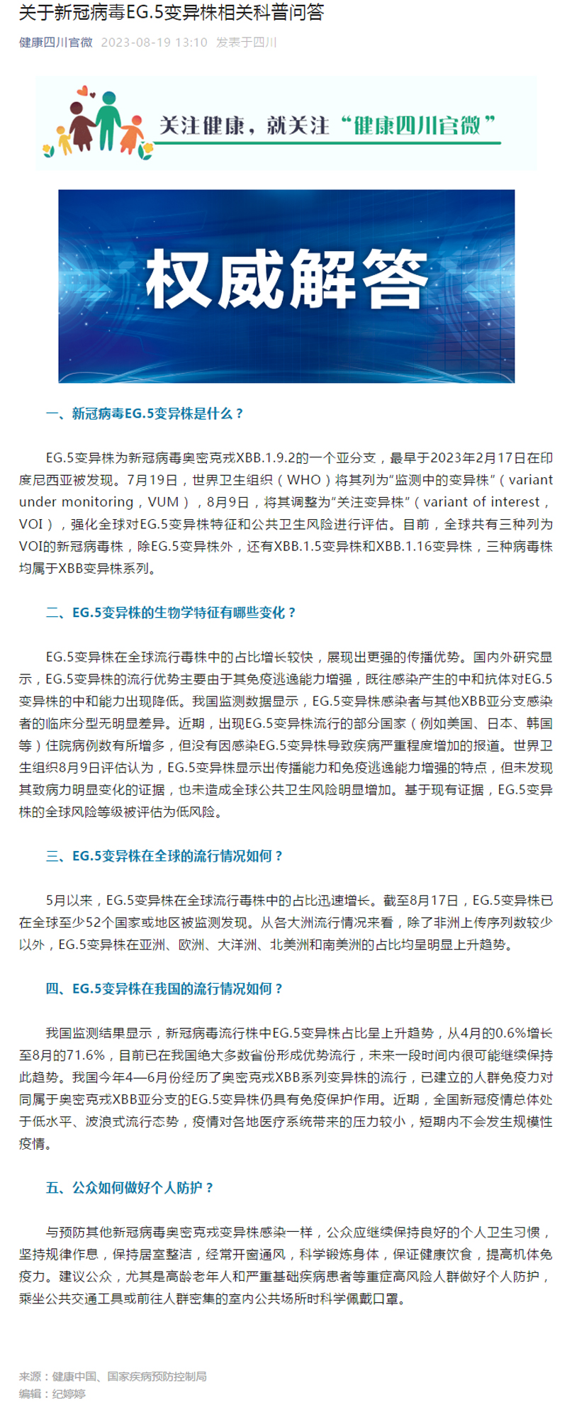 关于新冠病毒EG.5变异株相关科普问答