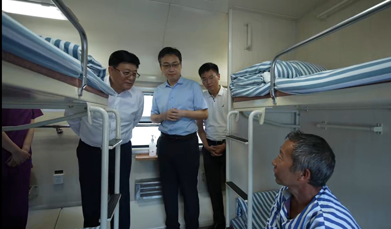 王贺胜一行登上健康快车火车医院,探望正在接受治疗的白内障患者,详细了解其术后恢复、工作和生活状况,慰问在车上执行任务的北京同仁医院眼科医护团队,高度赞扬他们医者仁心、无私奉献的职业精神。
