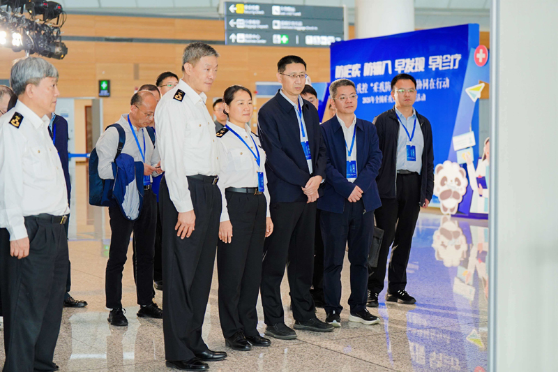 在“疟疾防控口岸行”环节,相关领导与专家学者深入成都天府国际机场的海关旅检现场,实地调研进出境人员健康申报、智能体温监测、医学排查处置等口岸卫生检疫作业,详细了解海关防范疟疾疫情跨境传播工作情况,为扎牢从“国门”到“家门”的协同管理闭环建言献策。