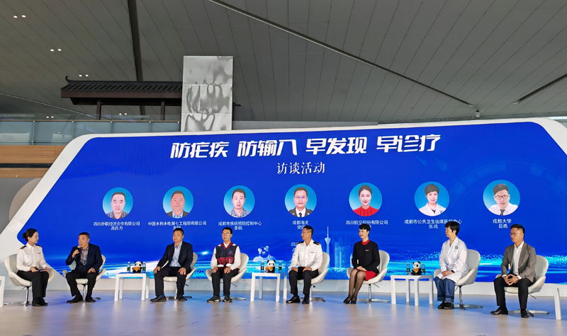在天府国际机场T1航站楼出境大厅,疟疾防控“四川在行动”工作成效展吸引了众多进出境旅客驻足。四川省疾控局、成都海关、四川航空公司、成都大学的工作人员现场向过往旅客介绍疟疾防控工作情况,宣传疟疾防控知识。同时,“防疟疾 防输入 早发现 早诊疗”专题访谈活动也备受关注,疾控、海关、企业及高校代表通过分享疟疾防控故事,展现关地协同成效,推介国际旅行“健康管家”服务,在深度互动中普及疟疾防控政策与知识。