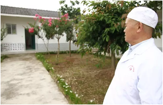 穿过碎石小路,出现在眼前的是两排平房,房子周围打扫得干干净净,绿树、红花、假山,甚至传来阵阵鸟鸣声。“老邓、老彭、老张,在不在”陆朝卫朝院子里喊着。“都在,都在!”大家回应到。“给你们带的肉、牛奶、豆腐干……”陆朝卫一边拾掇着,一边开了一盒牛奶递给手不方便的老张。老张名叫张仕斗,今年71岁,魏城镇牌坊村村民,1963年,19岁的张仕斗不幸患上了麻风病,住进了医院,这一住就是53年。1986年,老张治好了麻风病,但由于没有家室,没有房住,这里也就成了老张的家。