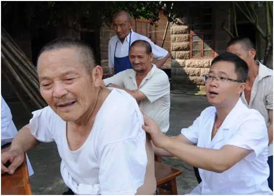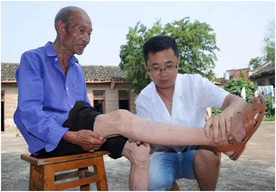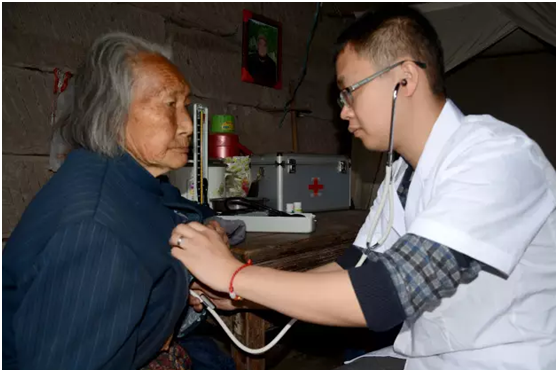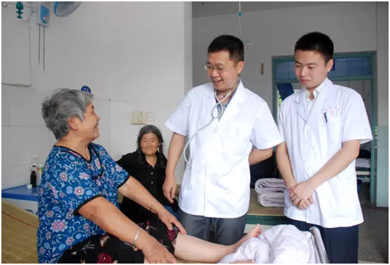 ▲7月21日,三烈乡卫生院组织医务人员前往敬老院,为老人义诊,因为人手不够,杨华谦主动请缨,和同事们一起去看望老人。