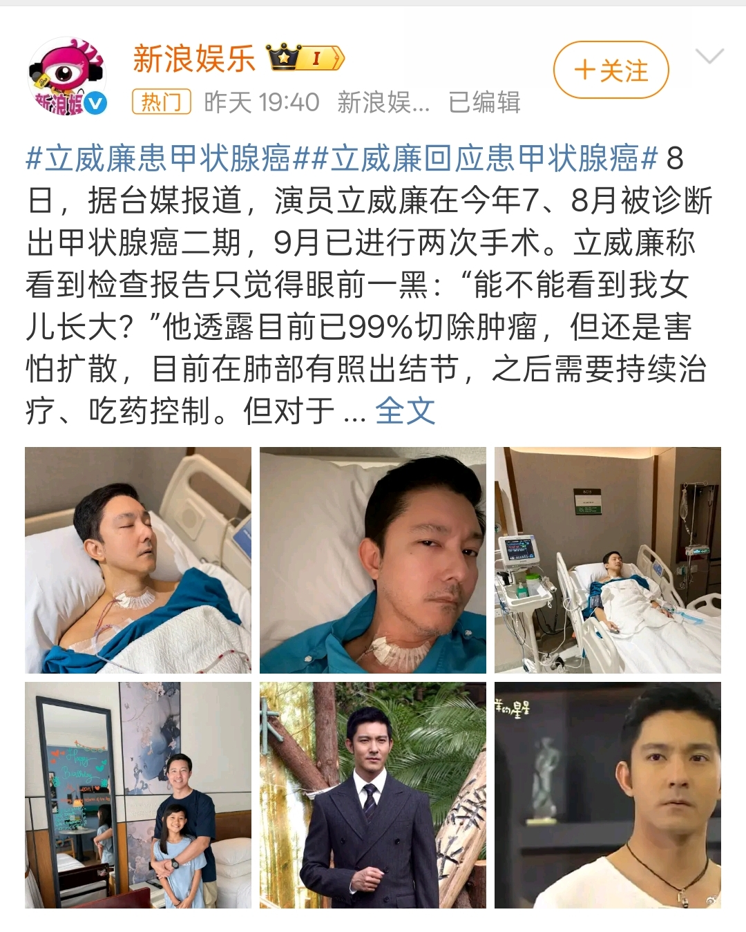 近日,知名男演员立威廉确诊甲状腺癌登上了热搜。