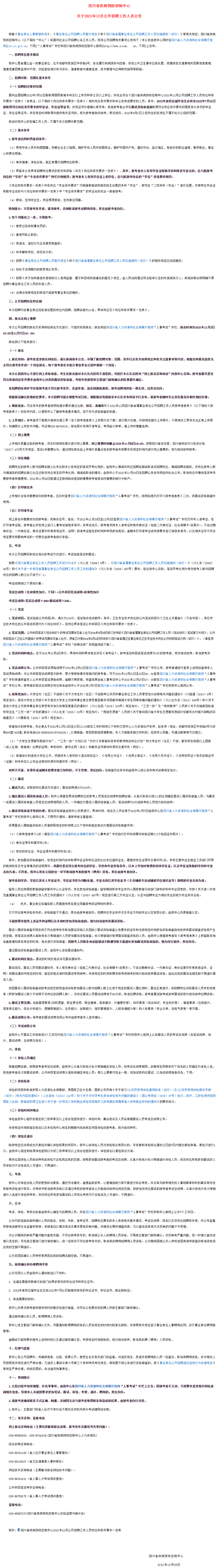 四川省疾病预防控制中心关于2021年12月公开招聘工作人员公告