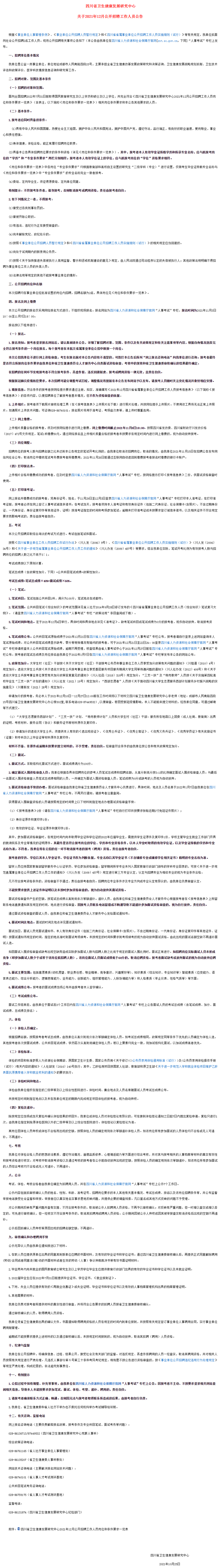 四川省卫生健康发展研究中心关于2021年12月公开招聘工作人员公告