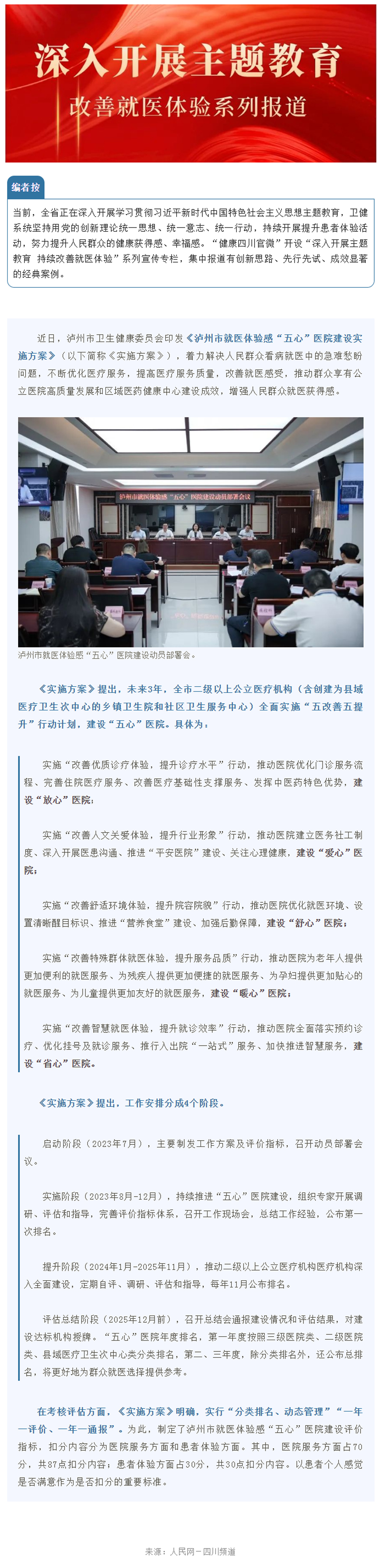 深入开展主题教育 改善就医体验系列报道⑨——泸州:创新建设就医体验感“五心”医院 切实改善群众就医感受