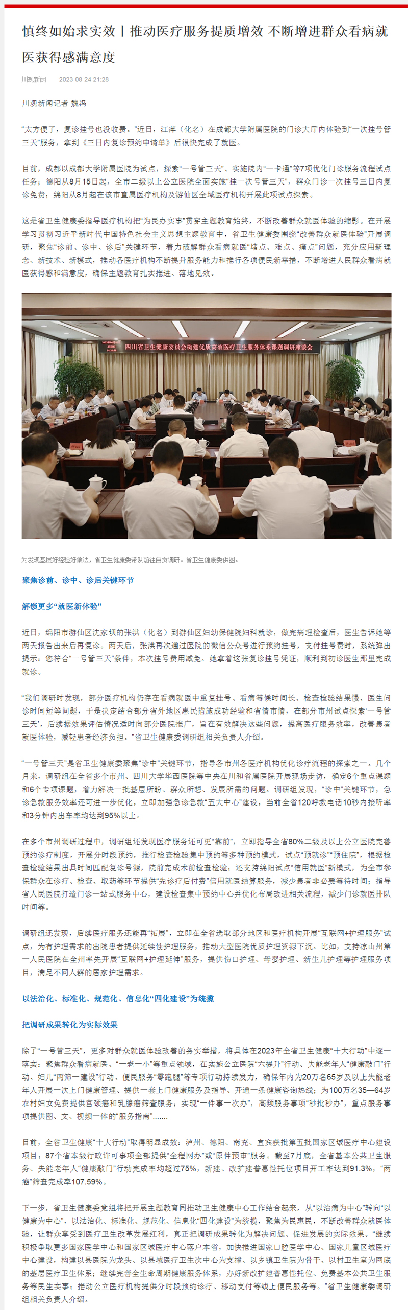 慎终如始求实效丨推动医疗服务提质增效 不断增进群众看病就医获得感满意度