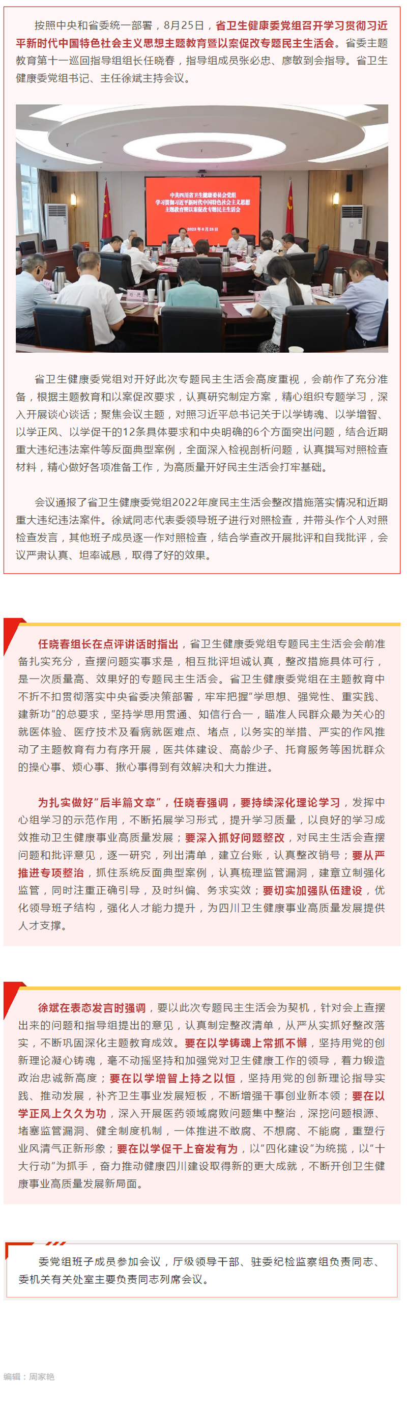 夫妻论坛 党组召开主题教育暨以案促改专题民主生活会