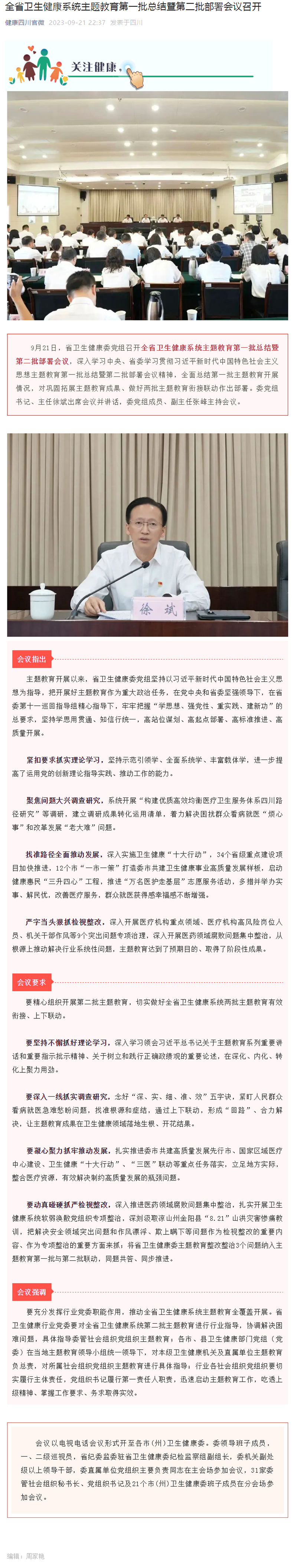 全省卫生健康系统主题教育第一批总结暨第二批部署会议召开