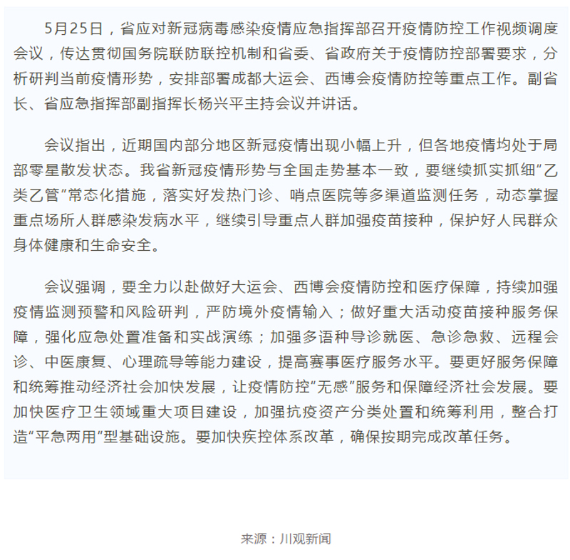 省应急指挥部疫情防控调度会议召开:全力做好重大活动疫情防控和医疗保障