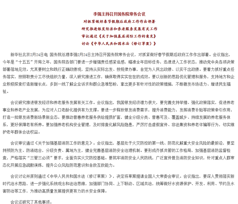 李强主持召开国务院常务会议 对抓紧做好春节假期后政府工作作出部署
