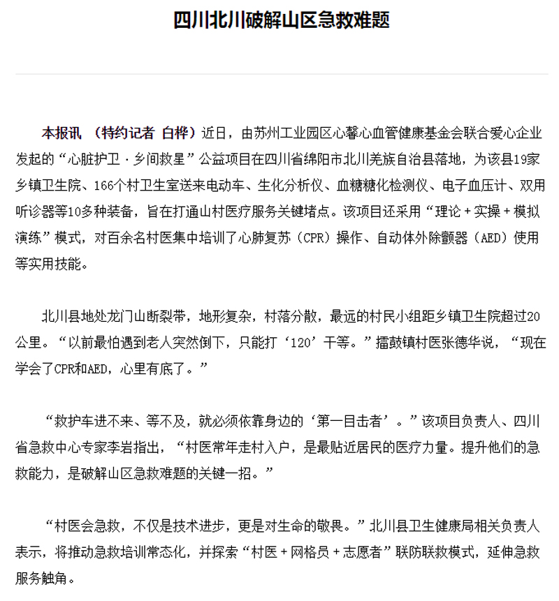 四川北川破解山区急救难题