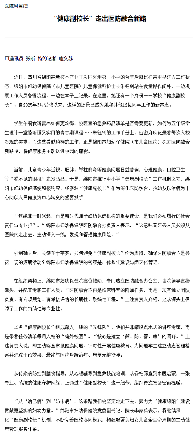 “健康副校长”走出医防融合新路