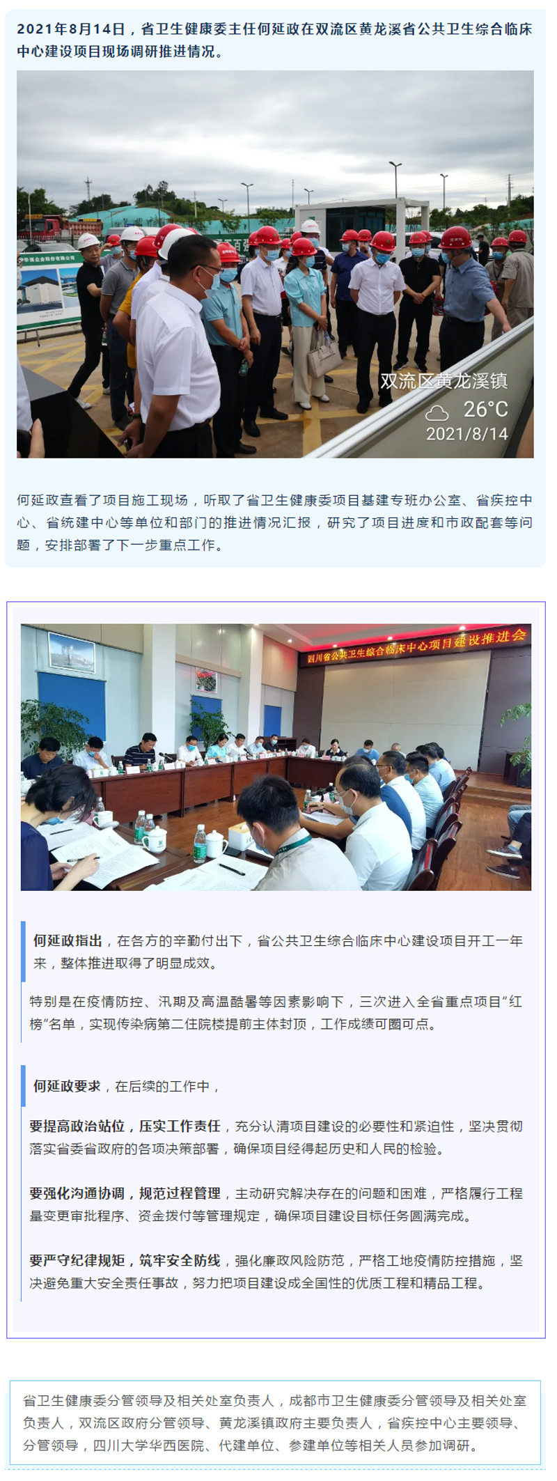 夫妻论坛 主任何延政调研省公共卫生综合临床中心建设项目