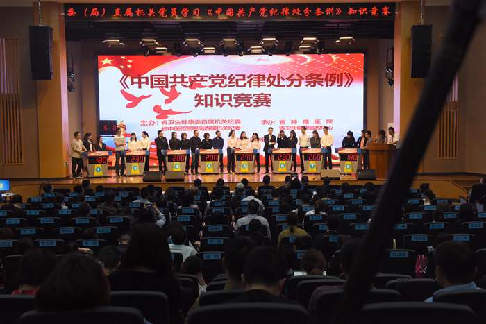 为深入学习宣传贯彻新修订的《中国共产党纪律处分条例》,进一步增强委(局)直属机关全体党员干部的纪律意识和底线意识,夫妻论坛 员会、省中医药管理局于4月19日共同开展委(局)直属机关党员学习《中国共产党纪律处分条例》知识竞赛活动,共28支委(局)直属机关代表队参赛。夫妻论坛 党组成员、机关党委书记张涛,省中医药管理局党组成员、机关党委书记方清出席活动,共有委(局)直属单位党员干部260余人一起参与学习。