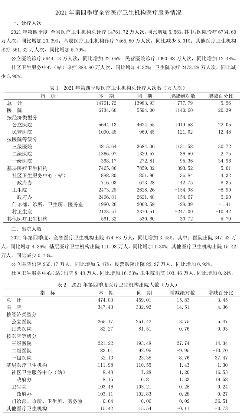 2021年第四季度全省医疗卫生机构医疗服务情况
