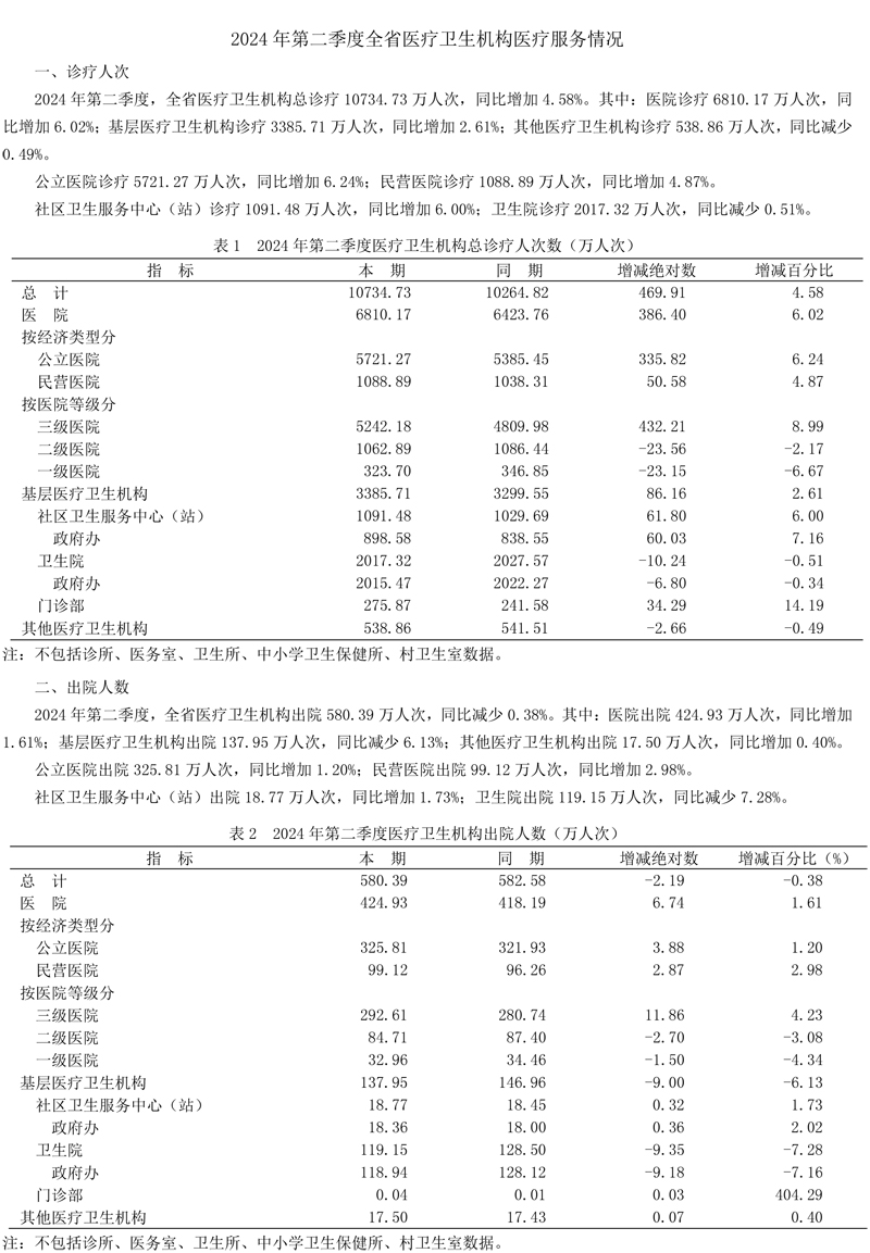 2024年第二季度全省医疗卫生机构医疗服务情况