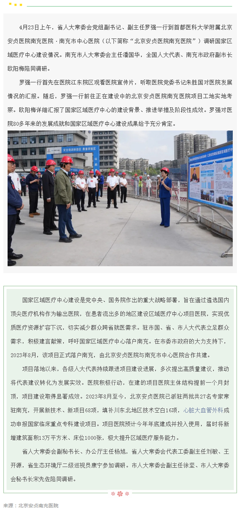 省人大常委会党组副书记、副主任罗强一行调研国家区域医疗中心建设情况