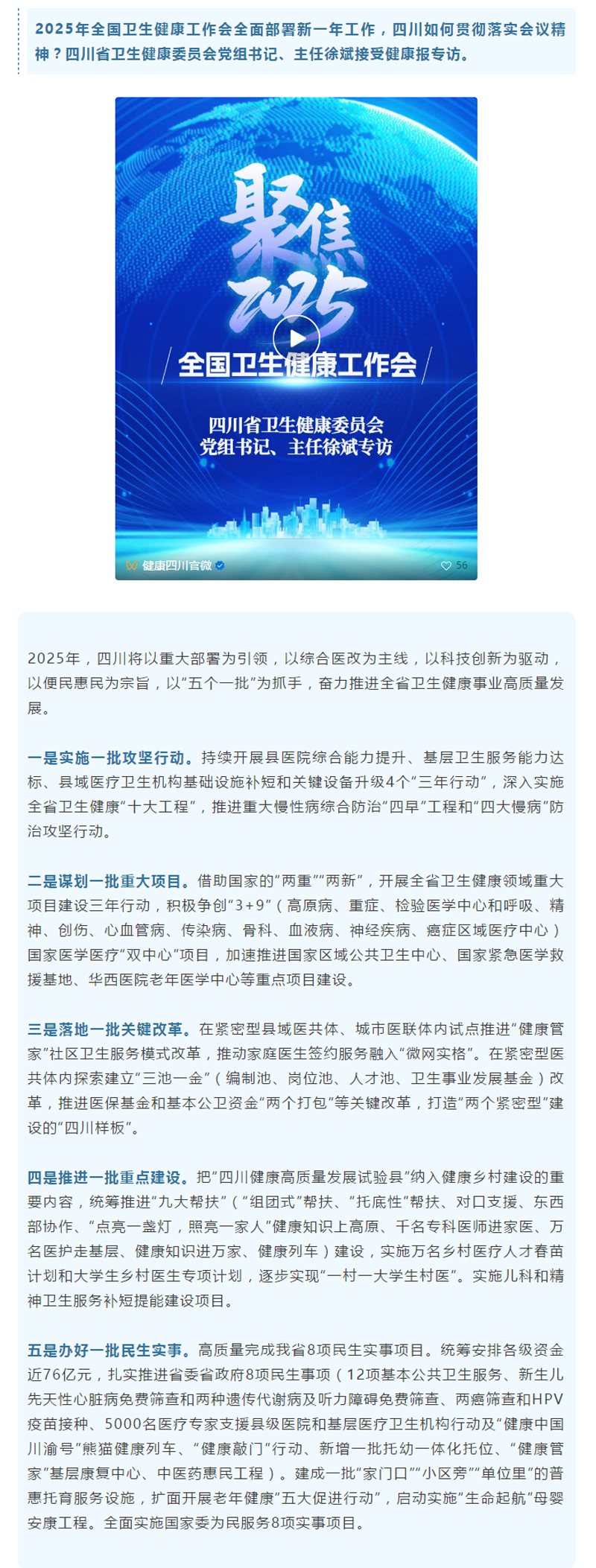 如何贯彻落实2025年全国卫生健康工作会议?夫妻论坛 党组书记、主任徐斌专访